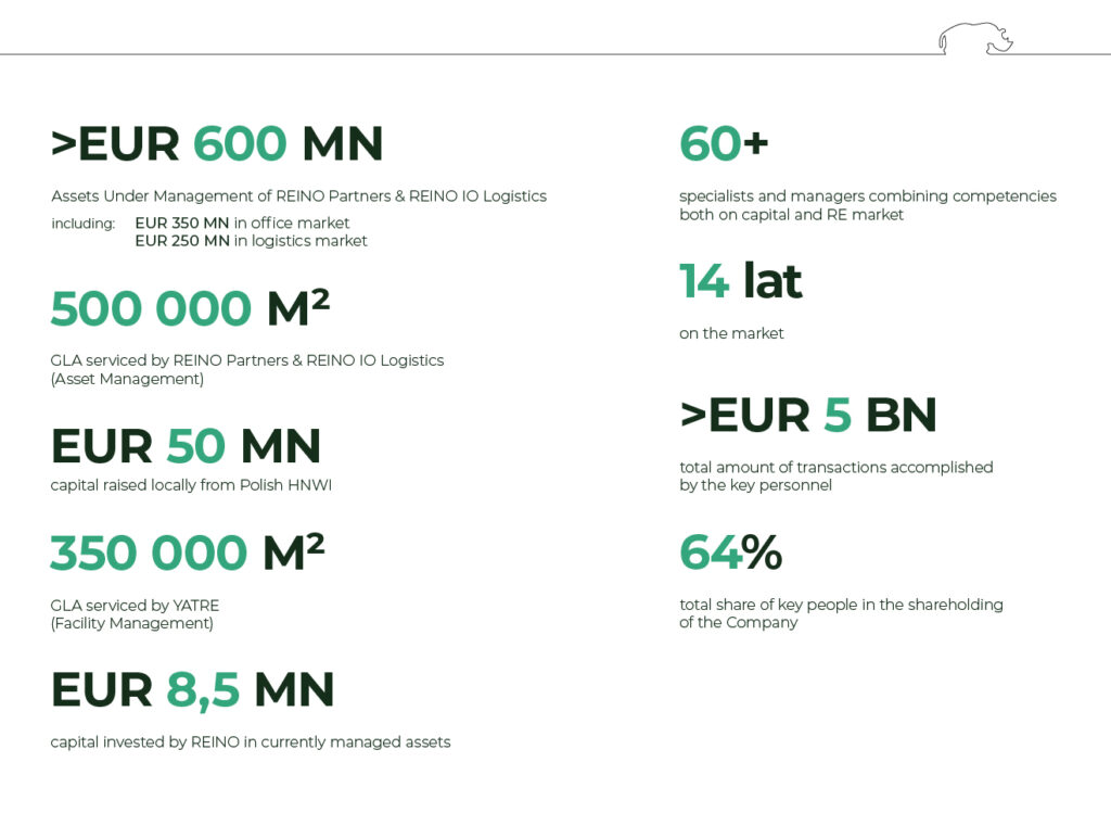 REINO Partners was established in 2010 as a joint venture of managers with many years of experience in both real estate and capital markets. The aim of the project was to offer Polish investors access to investments in the highest quality commercial real estate in Poland. Over time, we started working for the largest global investment funds. We build investment structures for them, powered by the best Polish office and logistics properties. We are involved in both investment and asset management of individual facilities.